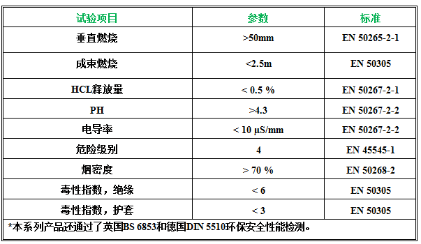 2、EN 50306特殊防火性能的鐵路車輛薄壁電纜